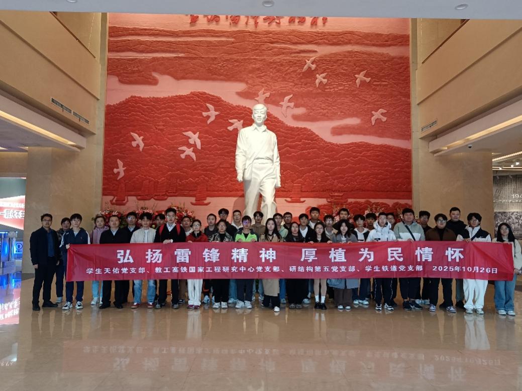 为深入学习贯彻习近平新时代中国特色社会主义思想,贯彻落实中央八项规定精神,引导党员在重温红色记忆中淬炼过硬作风、在感悟榜样精神中践行初心使命,10月26日上午,土木工程学院学生天佑党支部、教工高铁国家工程研究中心党支部、研结构第五党支部、学生铁道党支部全体党员前往湖南雷锋纪念馆及湖南党史陈列馆,开展“严规肃纪葆本色,红色血脉践初心”主题党日活动,学院党委副书记纪晓飞参加活动。