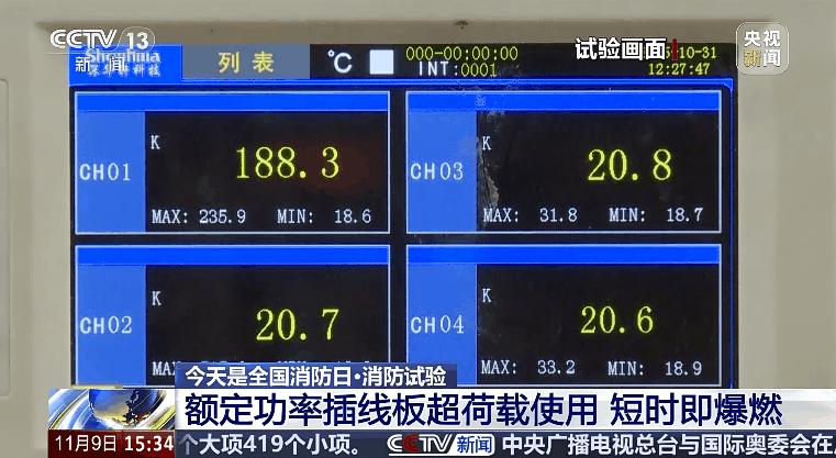11月9日,中央广播电视总台推出一档贴近民生的家庭消防科普实验节目,通过场景化还原真实呈现了插线板过载使用易引发火灾的风险隐患。据悉,本次实验由中南大学土木工程学院消防工程系提供专业技术支撑,依托高校科研力量科学复现了电气线路过载致灾过程。