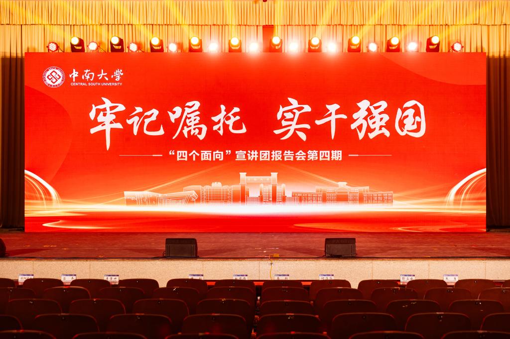 12月17日下午,中南大学“四个面向”宣讲团报告会在中南讲堂举行。报告会以“牢记嘱托 实干强国”为主题,呈现了中南师生在服务国家战略、推动科技创新与人才培养方面的担当和贡献。易红等校领导,处级干部、离退休老同志、教师及学生代表等700余人共同聆听。