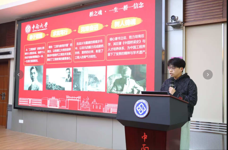 活动伊始,与会师生通过精心准备的多媒体资料及纪录片《百年巨匠·茅以升》精选片段,深入学习了茅以升先生光辉的一生与其博大深沉的精神世界。从钱塘江大桥的艰难兴建与战略炸毁,到晚年在科研与教育园地上的孜孜耕耘,先生以毕生实践展现了“爱国、科学、奋斗、奉献”的精神高度,其崇高品格与家国情怀深深感染了在座每一位师生。